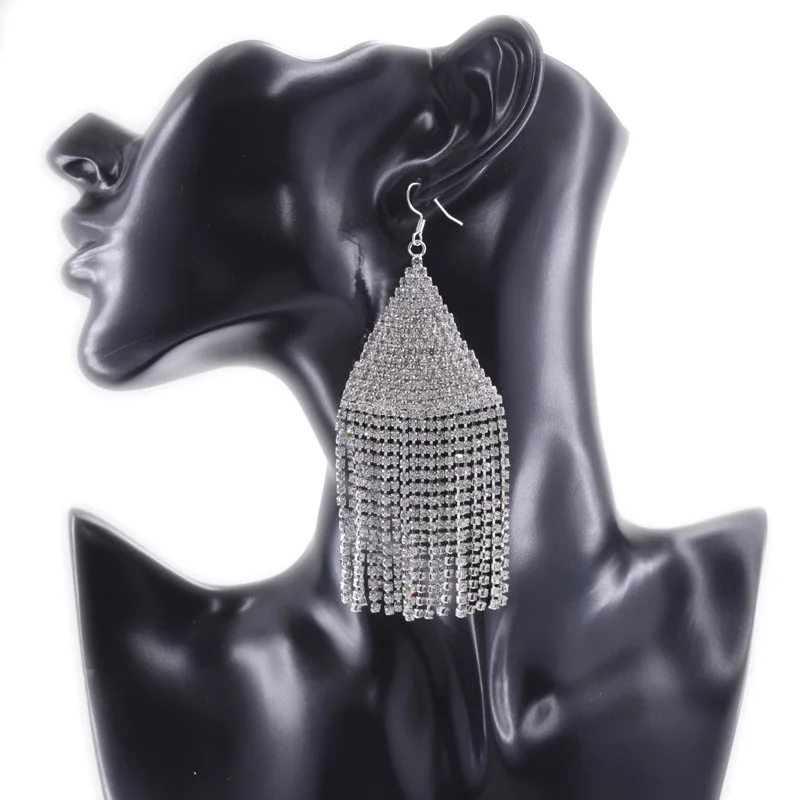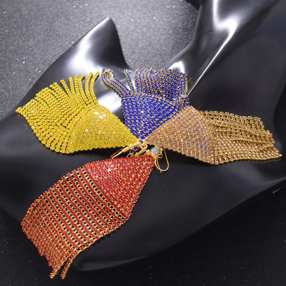 10,8 см длина стразы кисточкой drangeбыл женские серьги для свадьбы украшения большого размера в виде капель с кристаллами в форме рождественской Вечерние вечернее платье