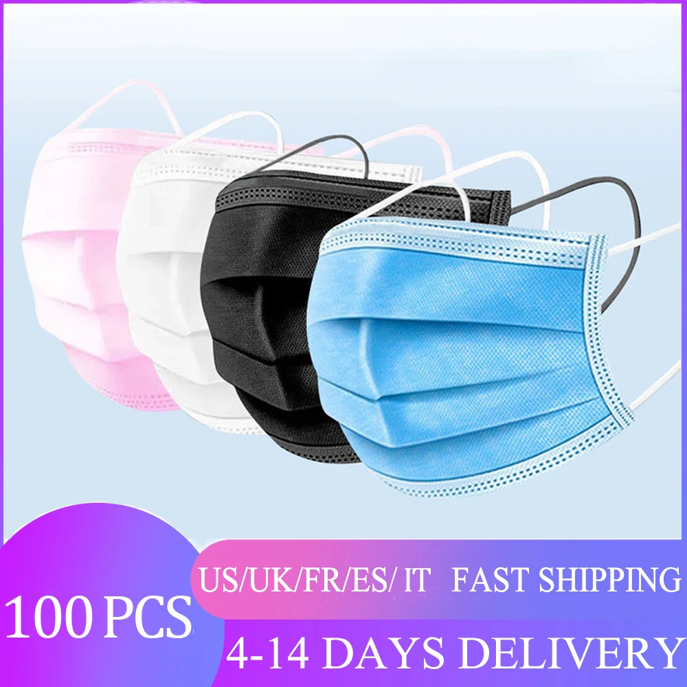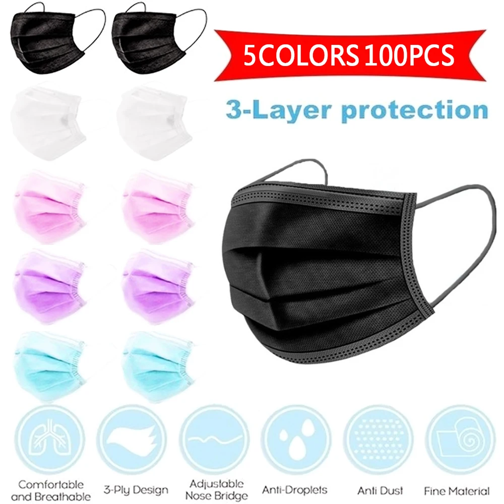 50/100/200Pcs одноразовая маска для лица Черный 3 слоя Защитная Дышащая Маска Нетканые анти-пыльные маски для детей на новый год, маски