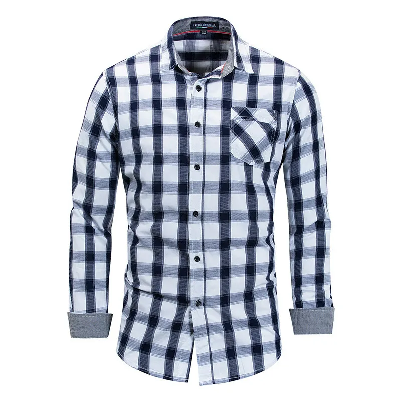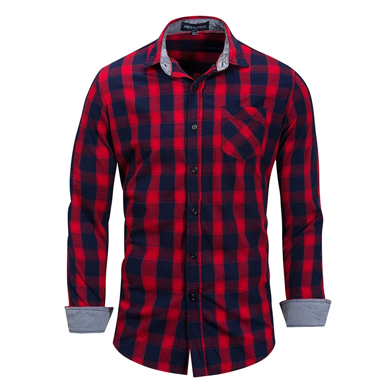 FREDD MARSHALL, Новое поступление, мужская рубашка в деловом стиле, в клетку, 100% хлопок, с длинным рукавом, повседневные модные рубашки MCL239