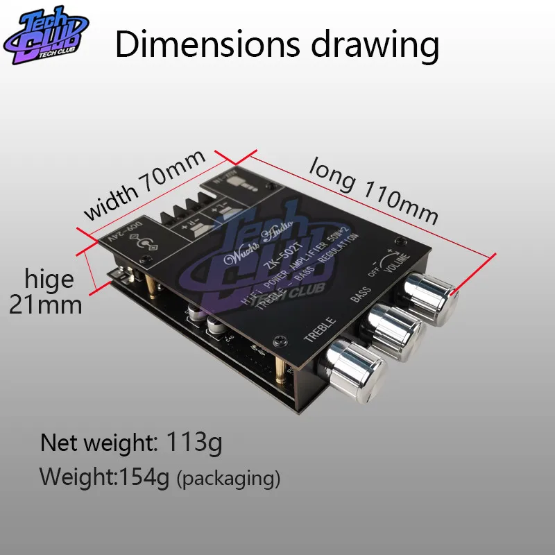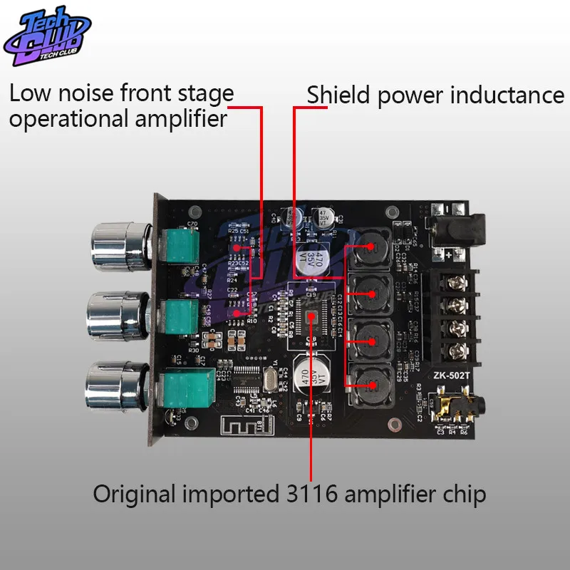 Идеальный HIFI Звук принимает TPA3116D2 (с функцией подавления помех AM) чип, с отличным качеством звука. Это гарантирует, что даже при высокой мощности в течение длительного времени, THD составляет менее 0.1%.
