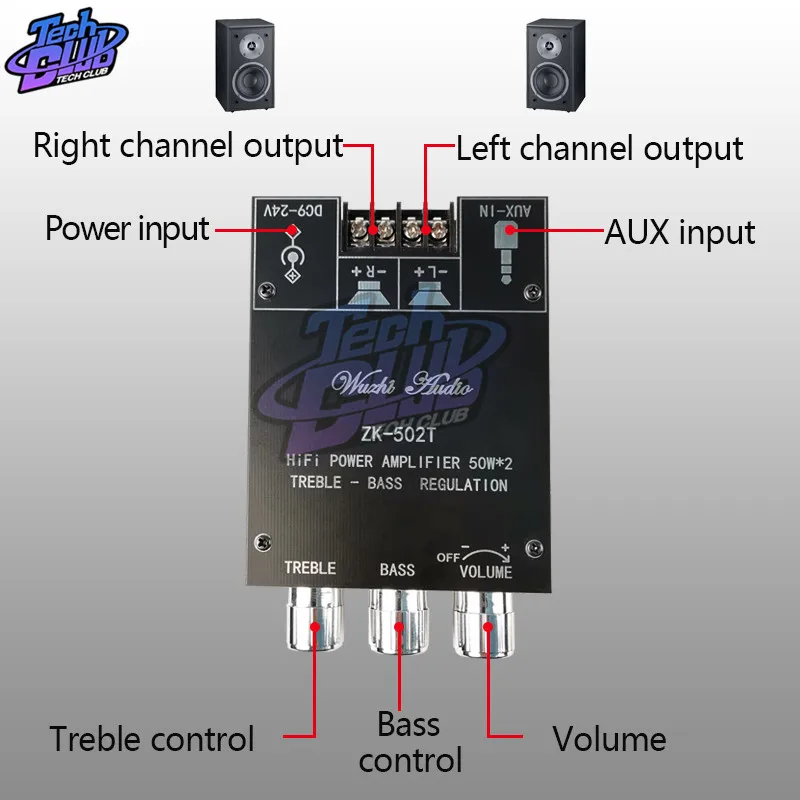 Mini but Power ful 2 CH стерео выходная мощность 50 Ватт * 2, диапазон рабочего напряжения DC5-27V, для пассивных динамиков 4-8 Ом, 50 Ватт-200 ватт.