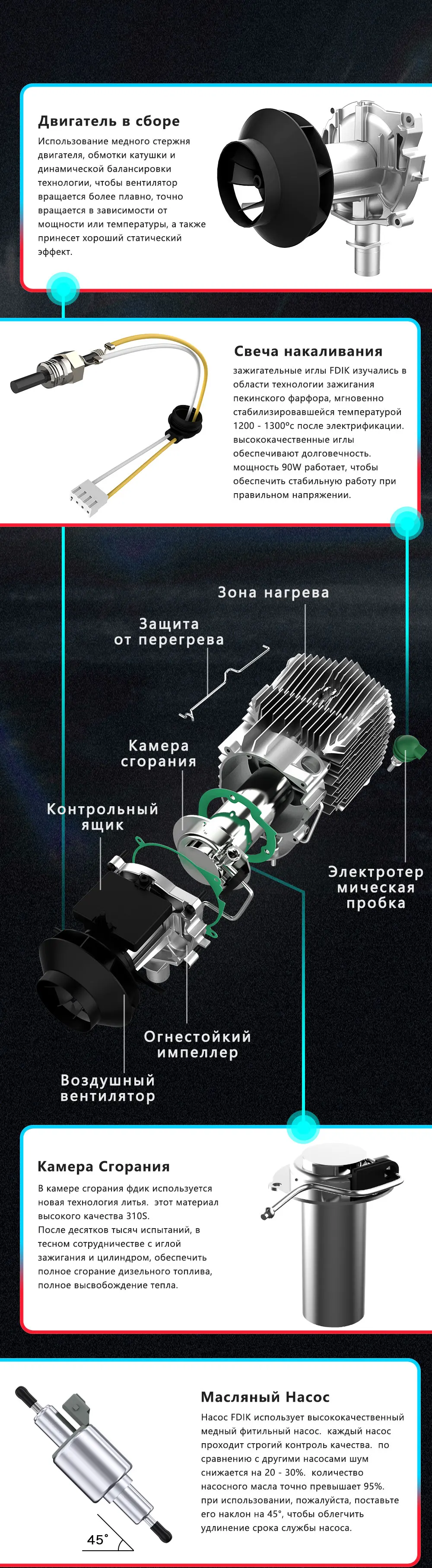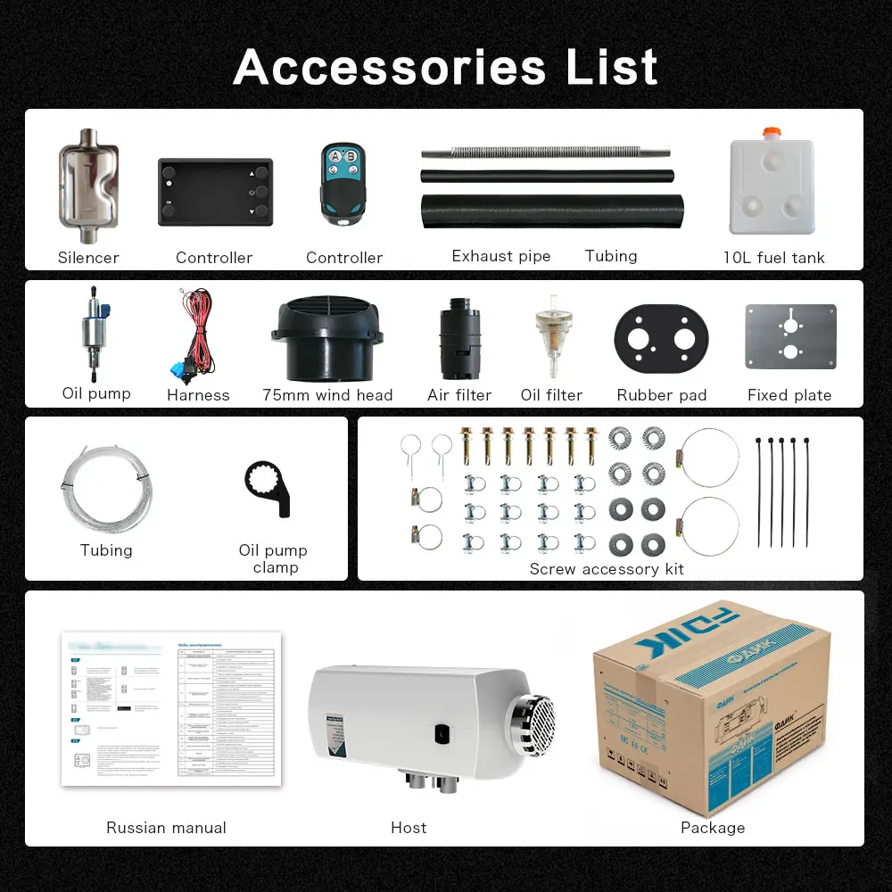 Автономка дошла за 5 дней до Сыктывкара. Собрана качественно. В комплекте для установки всё необходимое есть. Проверил от блока питания – работает и запускается. Пульт идёт с батарейками. Кто не понимает, для чего нужен чёрный шланг и почему топливная трубка не налезает ни на один штуцер – объясняю. Чёрный шланг нужно нарезать на 5 равных частей и сначала надеть на штуцер, потом вставить в него топливный шланг, а затем затянуть хомутами. Вот инструкция на русском языке, я вырезал все ненужные (уберите пробелы после точек) https://disk. yandex. ru/i/GwvSdFZN7FB55Q