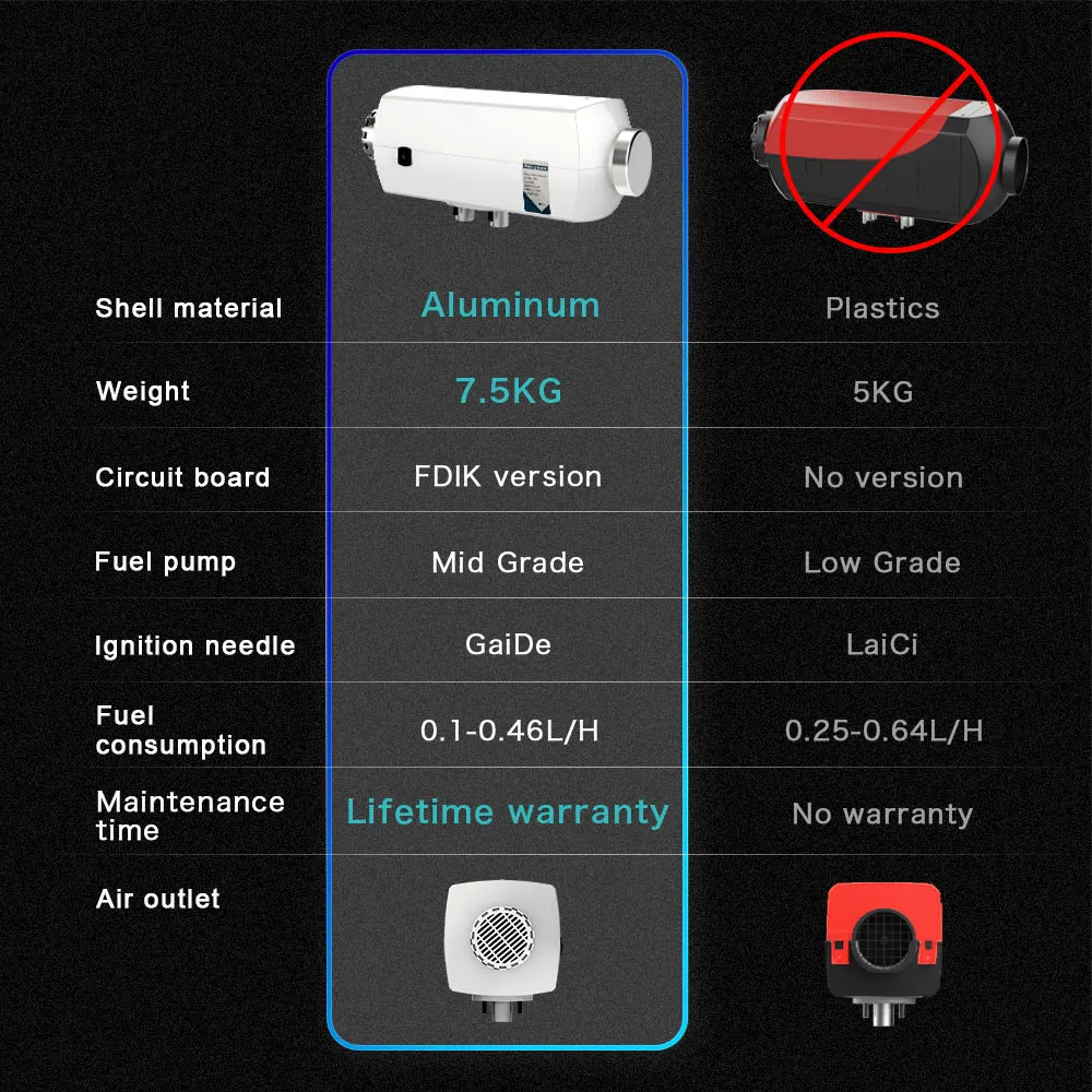 Выписал вторую автономку, пришло очень быстро за 5 дней, качество идиальное , первая работает на 5+ , эту буду устанавливать на вторую машину. корпус алюминивый, работает тихо, топливо кушает мало. рекомендую не пожалеете. Самарские планары отдыхают.