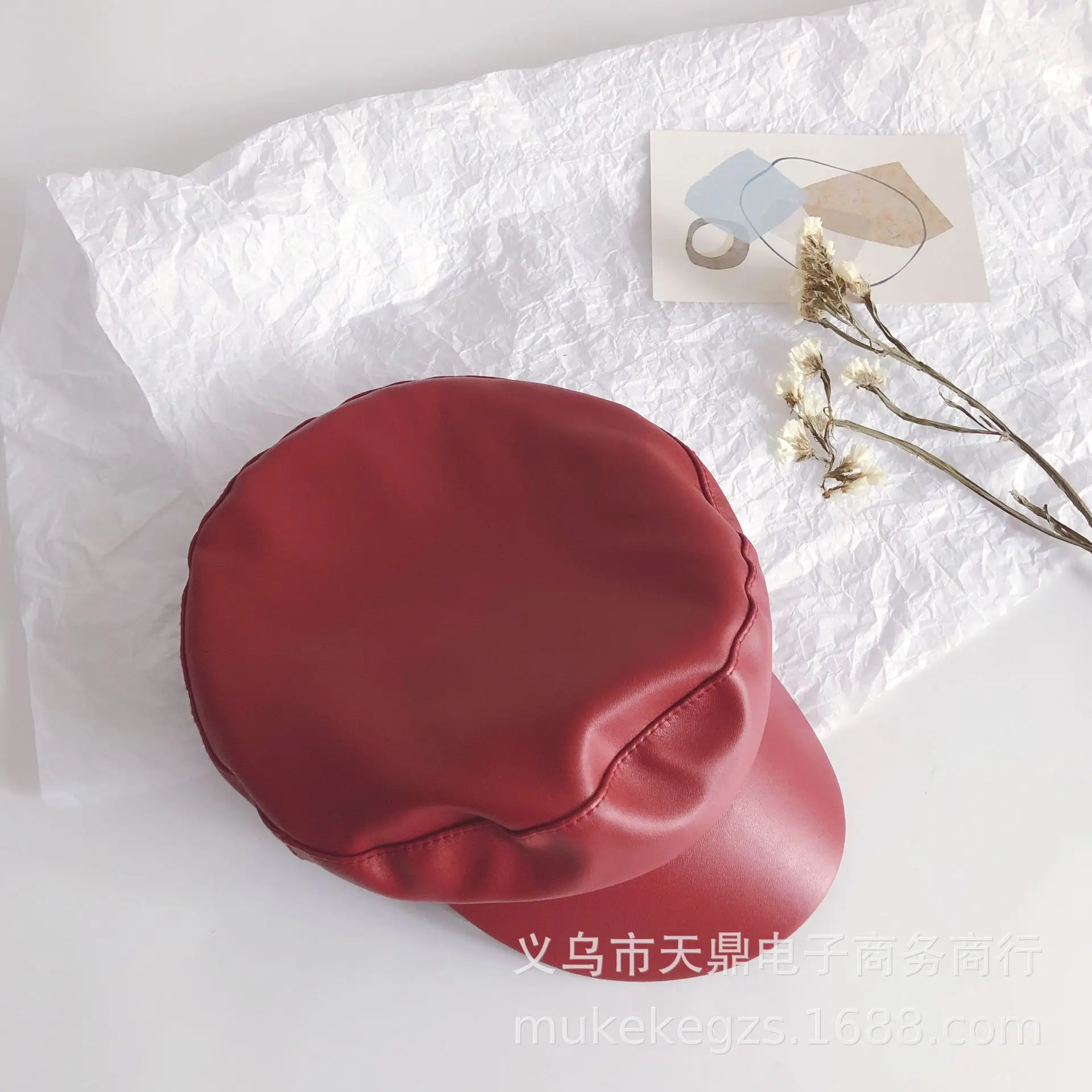 Детский кожаный берет, шапка, чистый цвет, плоская крыша, кожа, дикий берет, кепка, Newsboy, Pu, Ретро стиль, повседневный берет