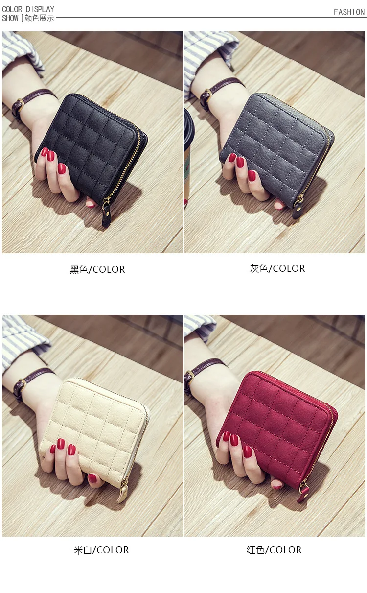 Женские короткие кошельки из искусственной кожи, Женские клетчатые кошельки, кошелек из нубука с держателем для карт, Модный женский маленький кошелек на молнии с Отделом для монет