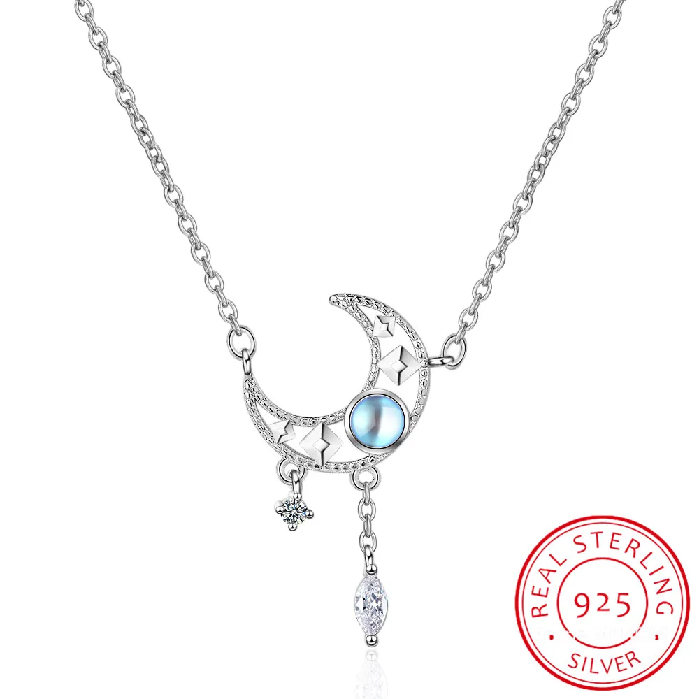 Модное ожерелье из стерлингового серебра 925 пробы, ожерелье с опалом и Луной для женщин, корейские серебряные украшения 2020, Новинка