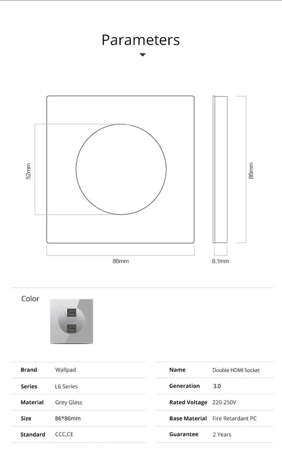Wallpad L6 Двойная HDMI Передача данных проводка розетка настенная розетка серая кристальная стеклянная панель