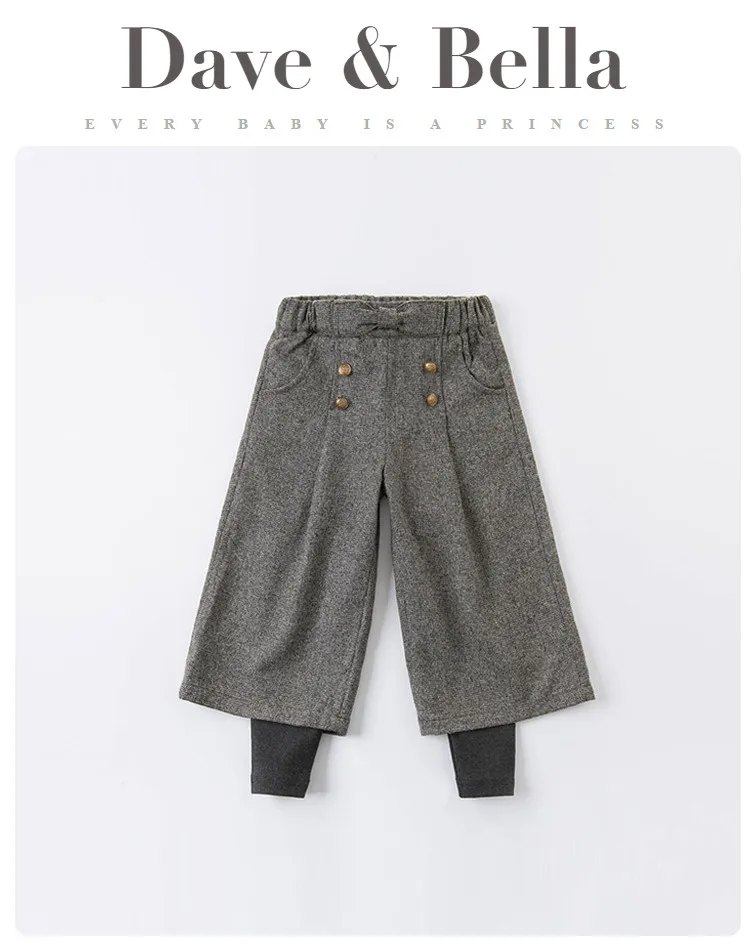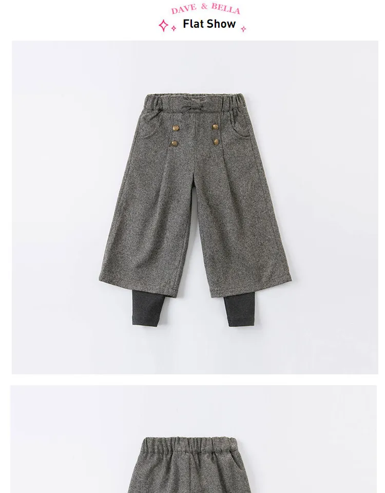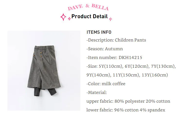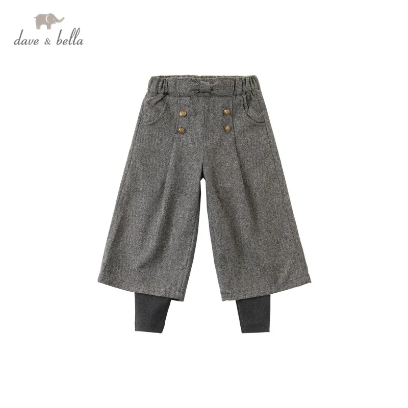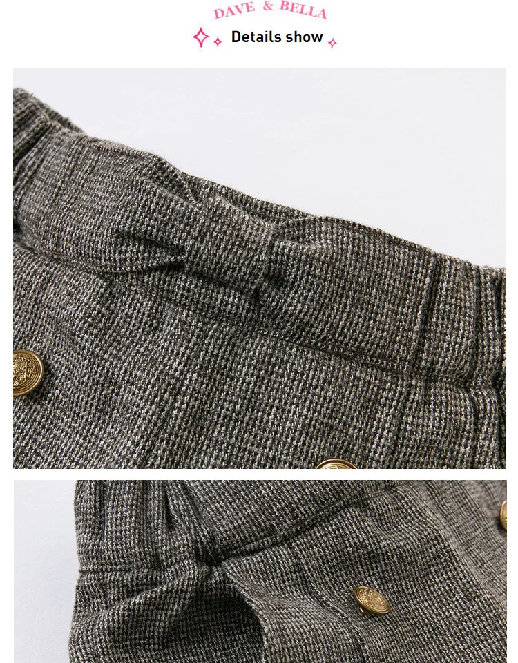 DKH14215 dave bellaосенние От 5 до 13 лет для девочек; Модные однотонные штаны с карманами и бантом; Детские изысканные повседневные длинные штаны