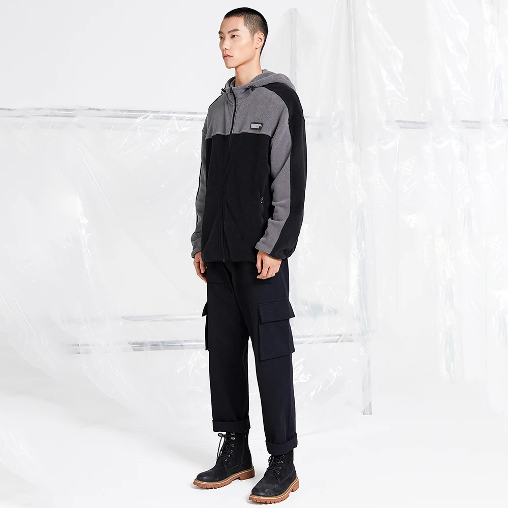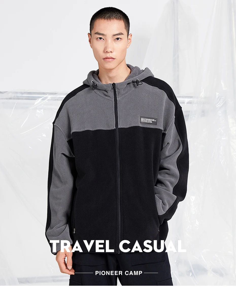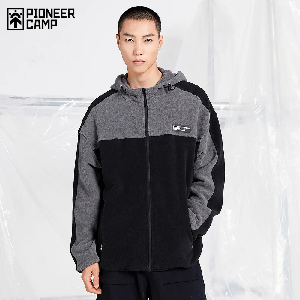 Пионерский лагерь осень зима теплая флисовая куртка мужская с капюшоном утепленная черная серая прострочка модная мужская одежда 2020 XLW002217