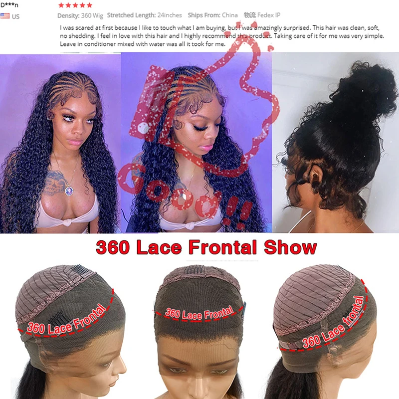 28-дюймовый кружевной передний парик, 360 кудрявый передний парик, ...