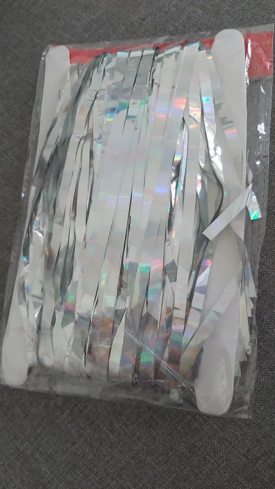 хороший дождик, заказала на новый год, но пока повесила в своей комнате. на сплошной части липучка маловата и в двух местах были порваны, так что пришлось заклеивать скотчем для надежности, а толщина нитей оказалась крупнее чем я ожидала, в остальном прекрасный товар.