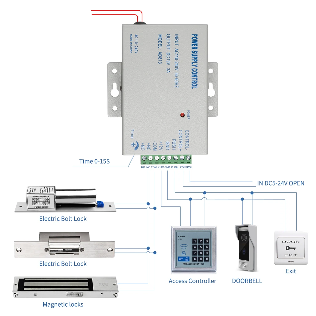 Электронный замок NC, это означает, что замок открывается без натяжения и блокируется с питанием. При нажатии кнопки разблокировки замок открывается. (пожалуйста, перед заказом убедитесь в этом.)