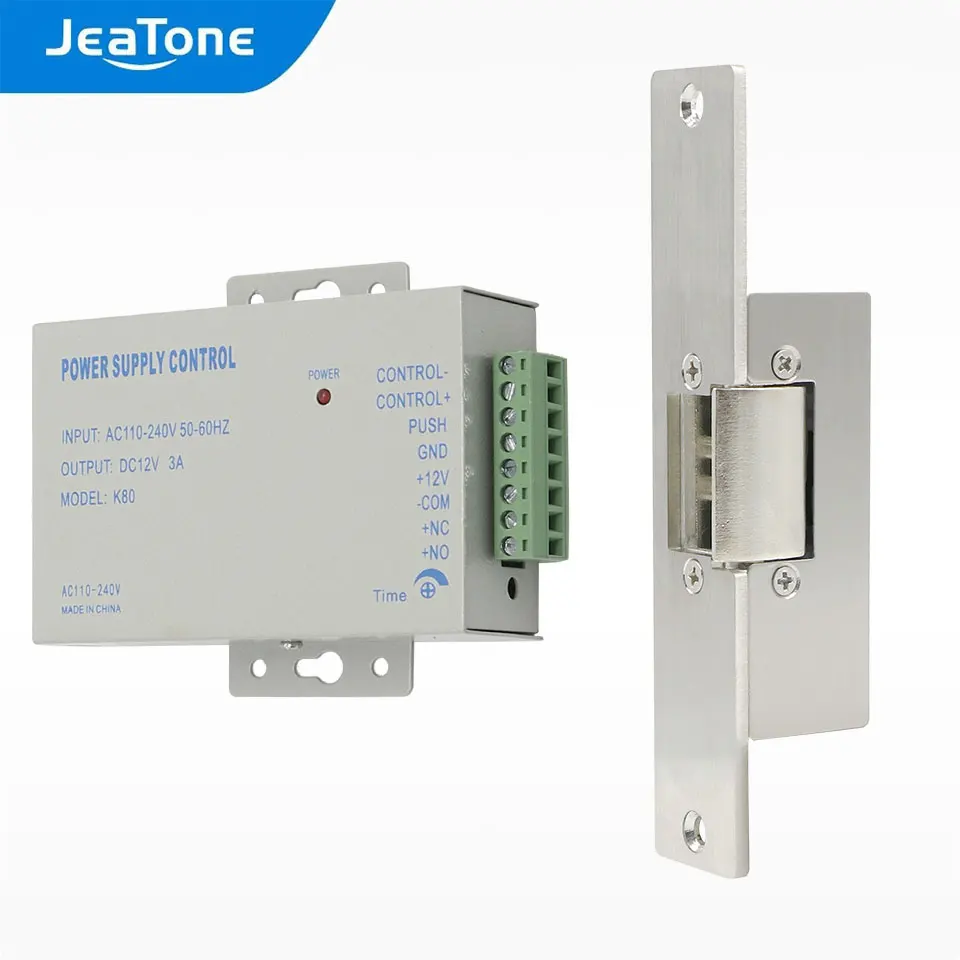 Электрический замок узкого типа Jeatone, с блоком питания для различных дверей, режим NC, безопасный доступ