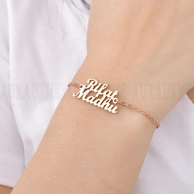 Индивидуальные 2 имени пара браслетов из нержавеющей стали женские ювелирные изделия юбилей подарок