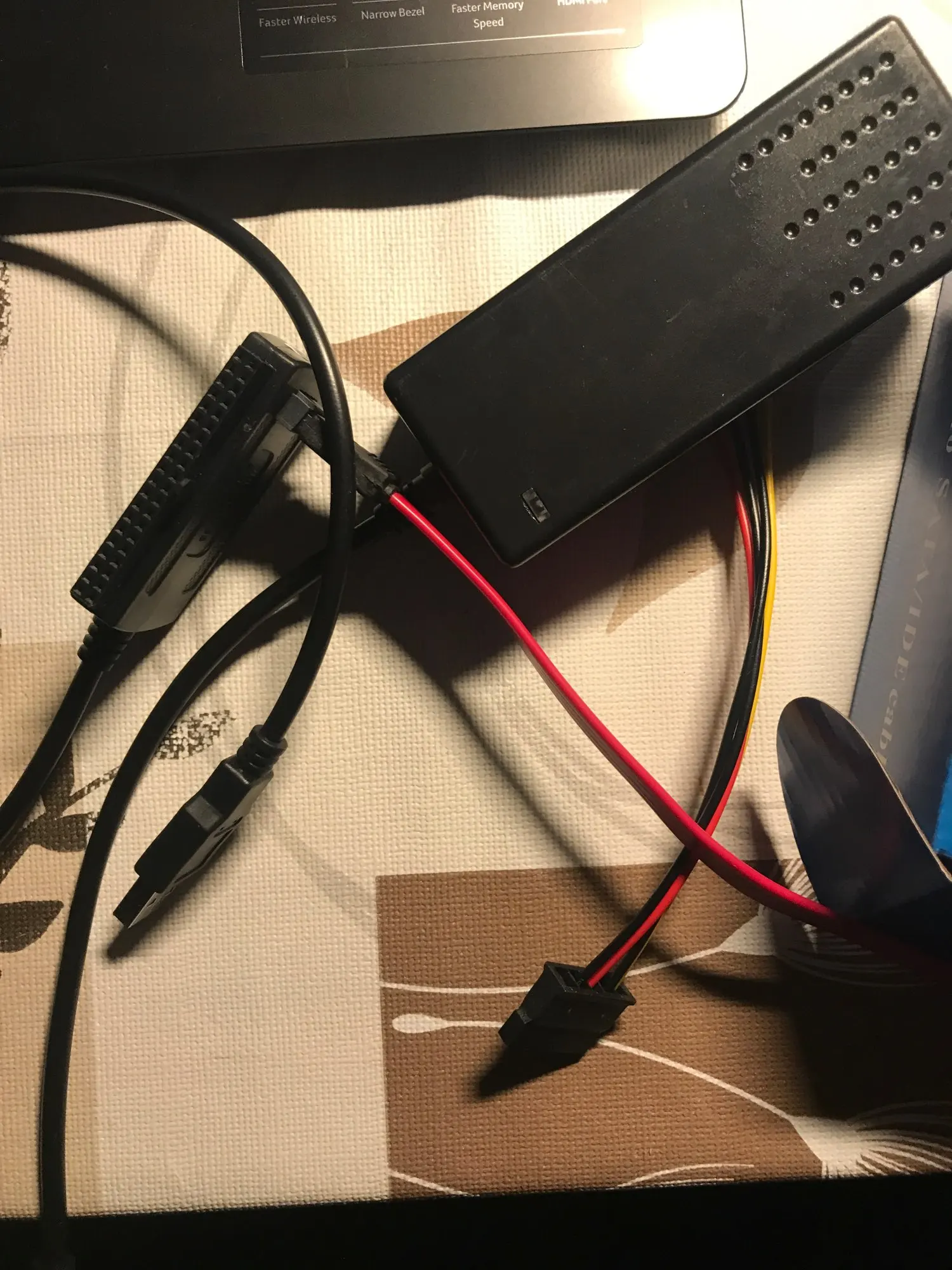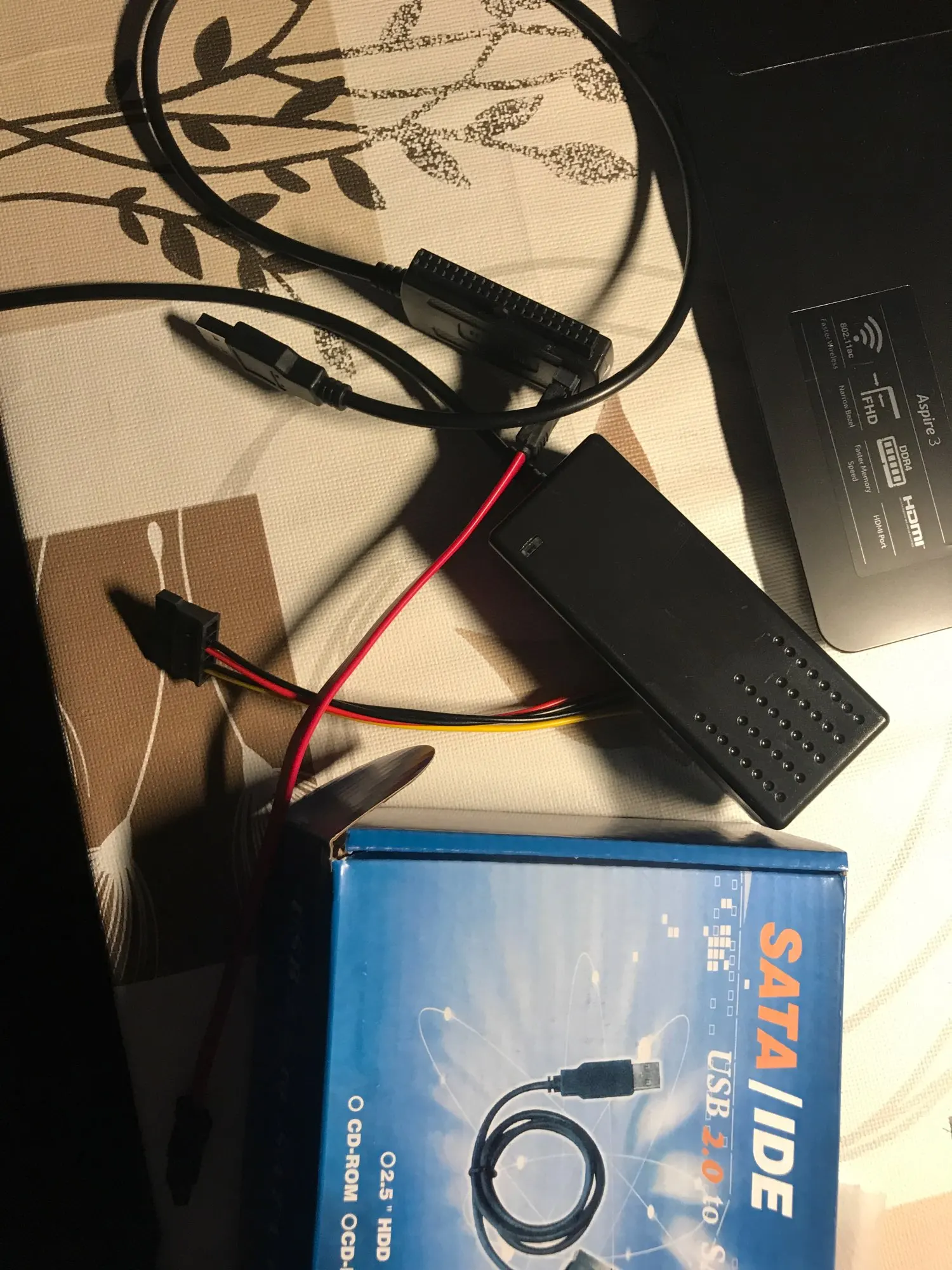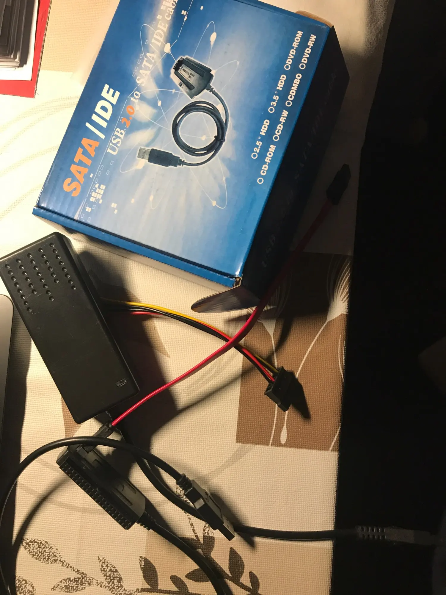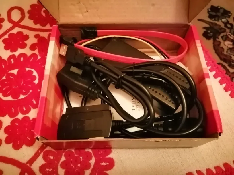 Товар пришел быстро. Был хорошо упакован. Функционирует хорошо. Читал с него 3,5 и 2,5 диски. Силовой провод нормальный, использую для питания дополнительного монитора, когда не использую этот товар. Переходник с молекса на сата тоже хорошо работает. А да.. еще IDE диски он тоже хорошо читает. В общем штука хорошая. Это такое универсальное средство для чтения любых дисков через usb. Рекомендую.