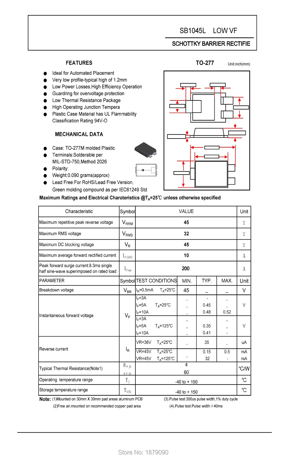 Диод Шоттки SB1045, SB1045L, SB10100, SB10100L SMD TO-277 10A 45V 100V