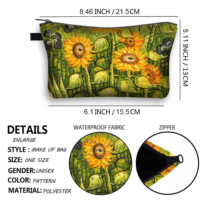 Water Lily Sunflower Daisy Flower Cosmetic Bag Women Makeup Bags Te...