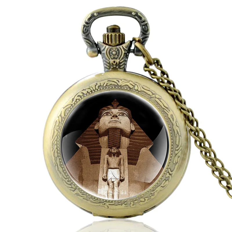 Винтажные кварцевые карманные часы с рисунком Древнего Египта, унисекс