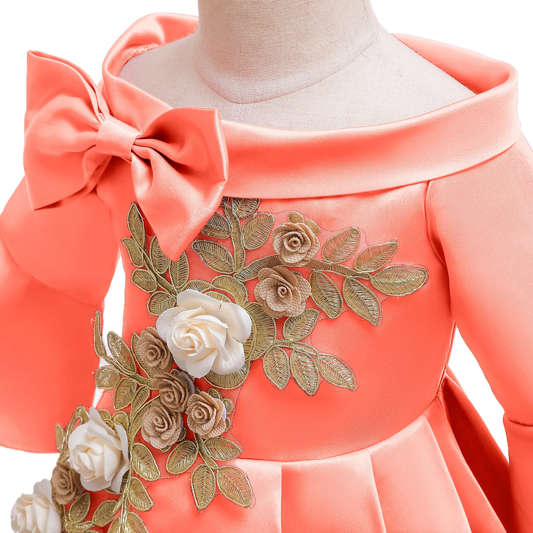 Детское платье без рукавов, с открытыми плечами и вышивкой