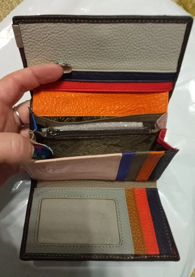 Кошелек хороший, лёгкий, мягкий.Заказывала по скидке.Продавец написал,что такой модели нет,предложил выбрать другую.Я согласилась.А после отправки моего заказа,о чудо,снова появилась модель, которую я хотела.Чувствую себя обманутой.