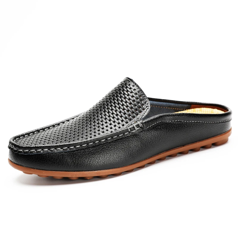 Летние мужские полуботинки; Повседневные лоферы из натуральной кожи; Мокасины для мужчин; Обувь без застежки; Мужская дышащая обувь с перфорацией; Цвет Черный