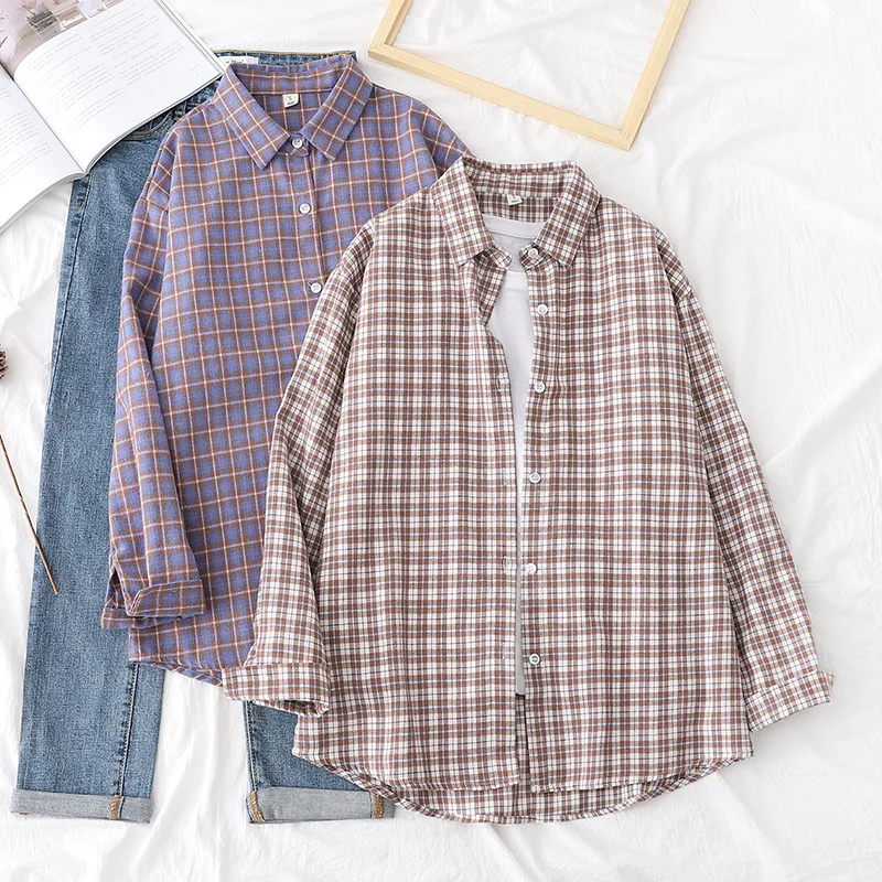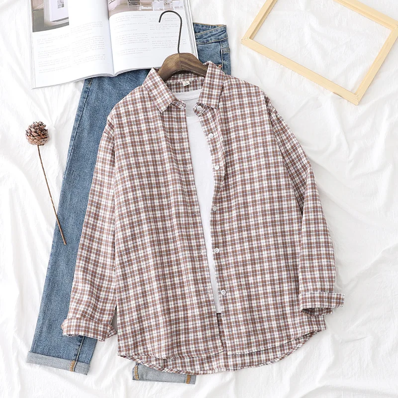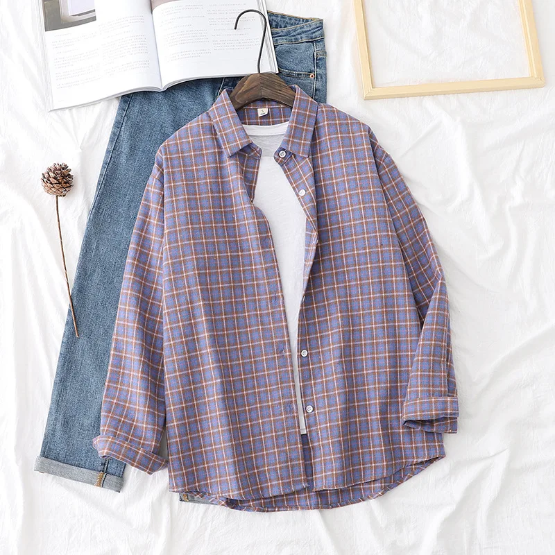 HSA Женская винтажная клетчатая блузка 2020 с отложным воротником, женская фиолетовая рубашка, шикарная одежда, женские блузы с длинными рукавами и пуговицами, топы