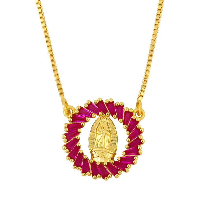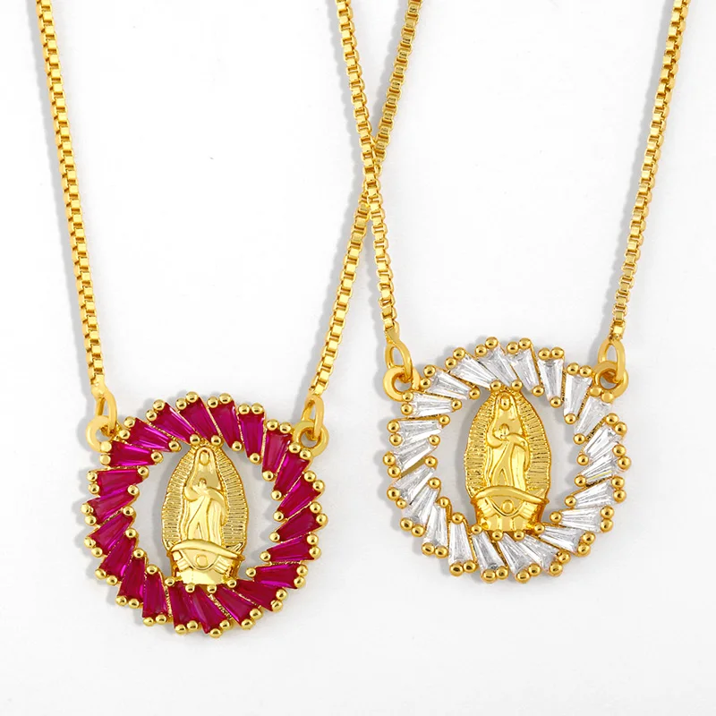 Радужная Дева Мария подвески для женщин ожерелье из золотых цепей К...