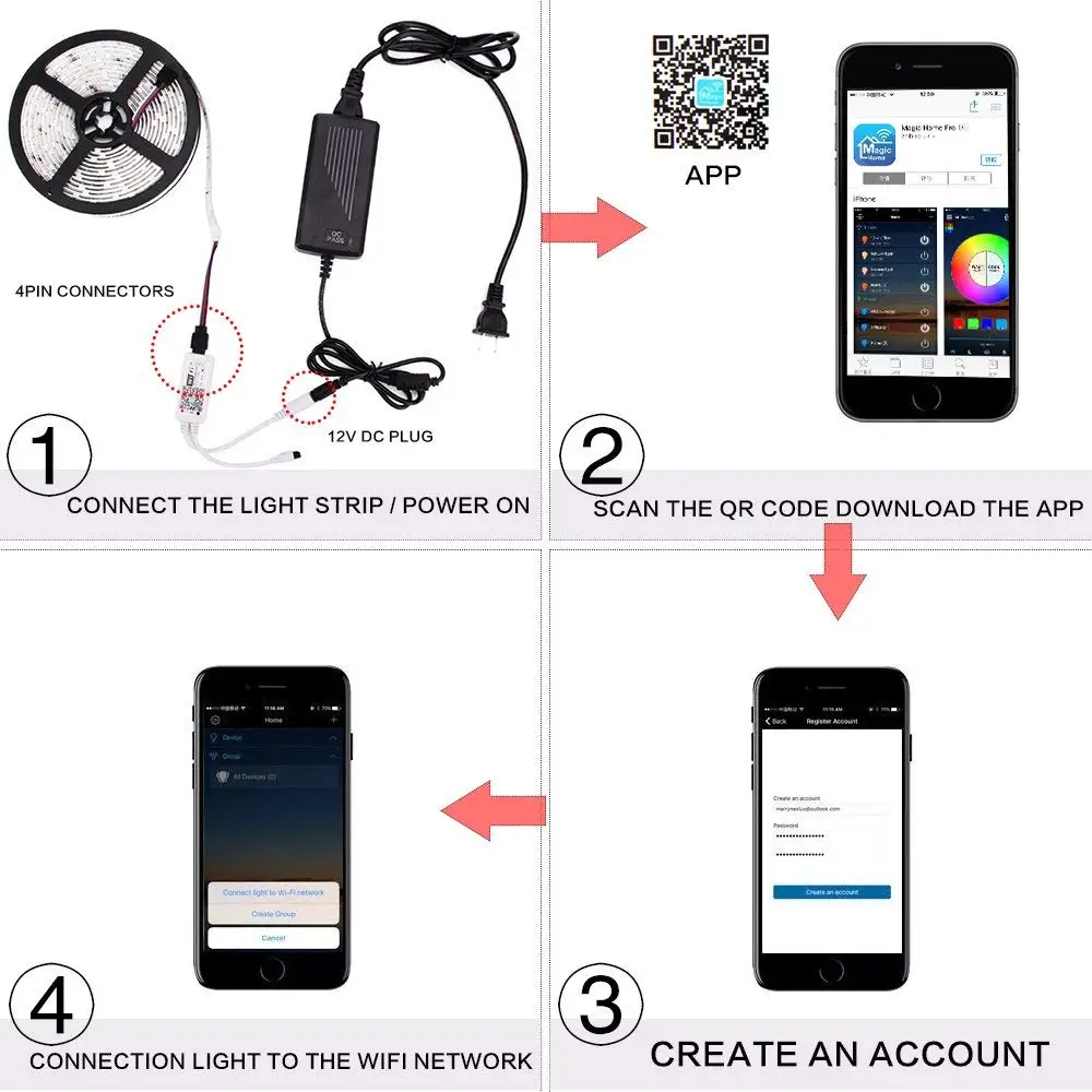 Функция времени:Мы можем использовать функции таймера для пробуждения и настройки более окружающего настроения перед сном; Установите расписание для автоматического включения и выключения ламп в вашем расписанииТовары первой необходимости:Мы можем контролировать светильник, цвет, интенсивность и настроить пользовательскую вспышку, стробоскоп, выцветание цветов и вспышку для воспроизведения звука/музыки с телефона, планшета. Отлично подходит для праздников и мероприятий, таких как Рождество, Хэллоуин, вечеринкиWifi контроллер:Хорошо работает с Alexa для включения и выключения функций, если пульт не работает, вы можете повторно подключить приложение несколько раз Как использовать: В одном режиме:Один телефон может управлять 1 шт. WIFI контроллерОдин WIFI контроллер может управляться многими телефонами В сетевом режиме:Сколько WIFI контроллеров один телефон может синхронизировать управление так же, как и сколько устройств один WIFI роутер может работать сОдин WIFI контроллер может управляться только одним телефоном Особенности.Высокое качество светодиодный s: супер яркий 5050 SMD гибкий светодиодный RGB RGBW RGBWW светильник полоса может быть вырезана каждые три светодиодный s. Светодиодный светильник лента имеет долгий срок службы (при превышении 50000 часов). Низкое энергопотребление и экологичностьБеспроводной смарт-контроллер Wi-Fi: 16 миллионов цветов, управление смартфоном, режим таймера, вы также можете сделать освещение с ритмом музыки в вашем смартфоне, С помощью приложения 1 для управления многими Wi-Fi контроллерами одновременноНесколько применений: наш светодиодный светильник RGB может быть использован для украшения вашего дома (Е. g. Столовая, кровать, наверху, кухня, крыльцо, стол и гостиные, особенно отлично подходит для праздников и мероприятий, таких как Рождество, Хэллоуин, вечеринки)