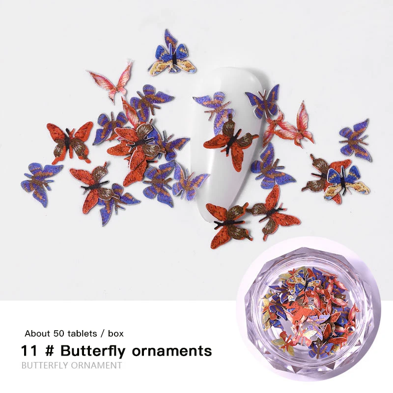 50 шт.кор. деревянные стружки для ногтей 3D в форме бабочки блестящие красочные блестки для ногтей Стразы для маникюра