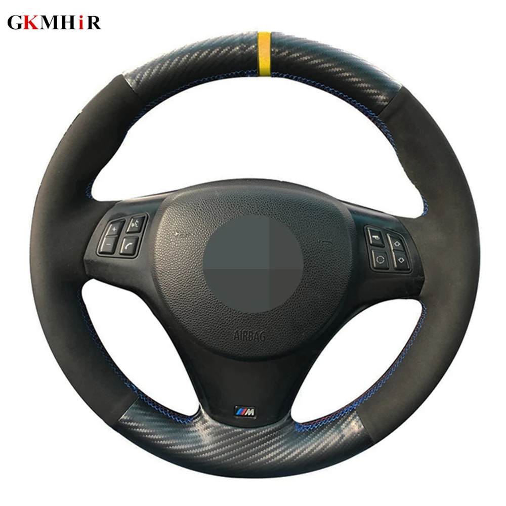 Ручной работы черная замша углеродного волокна Кожаный чехол рулевого колеса автомобиля для BMW M спортивные M3 E90 E91 E92 E93 E87 E81 E82 E88