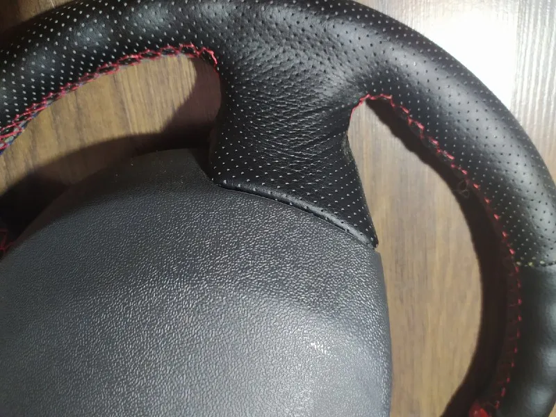 Чехол рулевого колеса автомобиля черная искусственная кожа красный ...