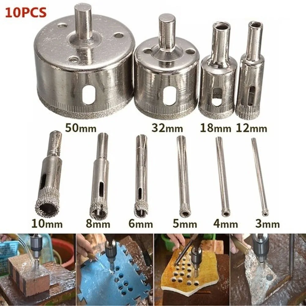 10 шт. набор сверл с алмазным покрытием, 8-50 мм, прочный резак, набор сверл для плитки, керамического мраморного стекла