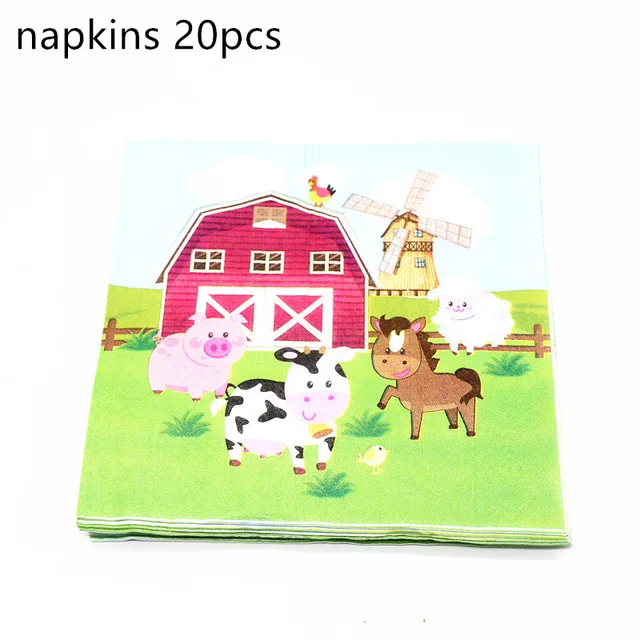 Тематическая одноразовая посуда с изображением животных на ферме, б...