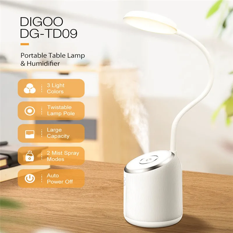 Описание: DIGOO DG-TD09 2 Вт 280 мл USB Charing настольная лампа увлажнитель Ночник светильник для спальни регулировка на 360 °