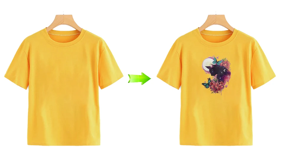 Наклейки с изображением кошек и бабочек, новая модная моющаяся Термотрансферная футболка, украшение для джинсов, термоклейкая нашивка