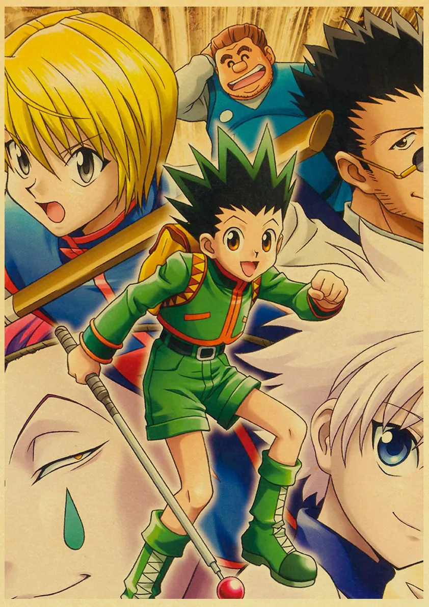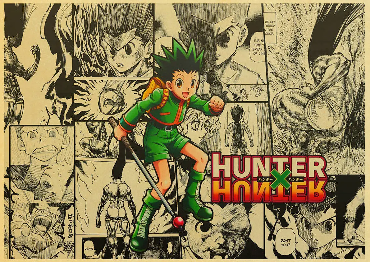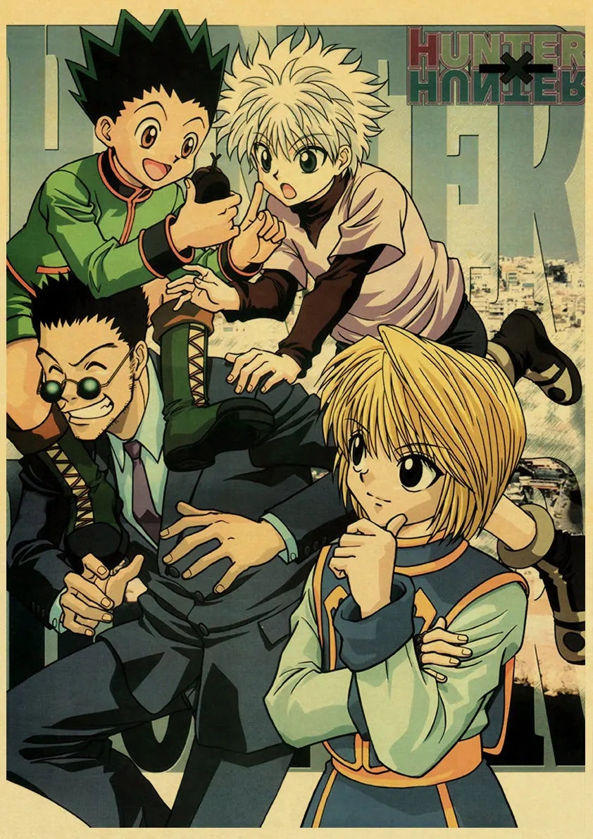 Охотник x охотничий плакат, классический постер в стиле японского аниме, ретро, крафт-бумага, настенное искусство, Декор для дома, винтажная живопись