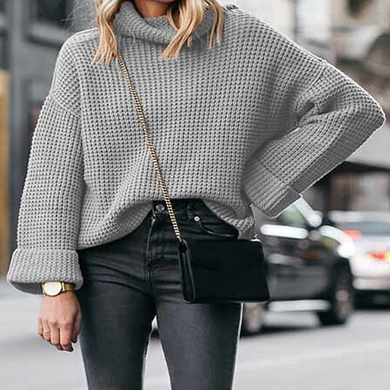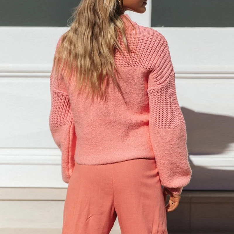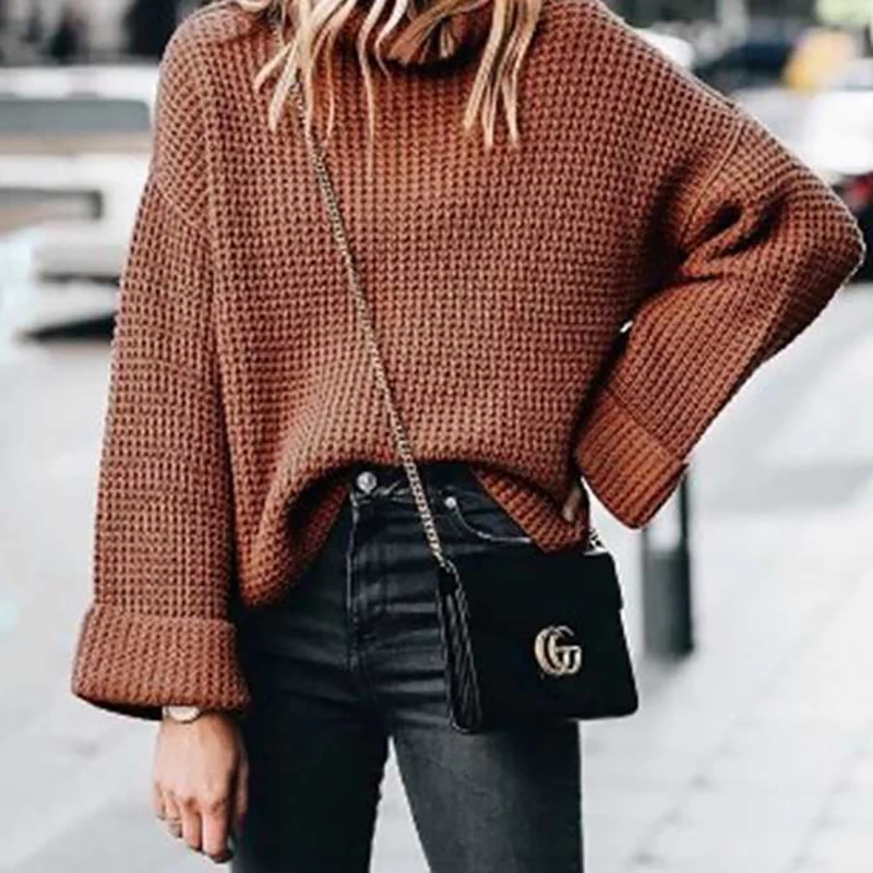 Свитер Женский вязаный, с длинными рукавами и круглым вырезом, осень свободный сплошной пуловер
