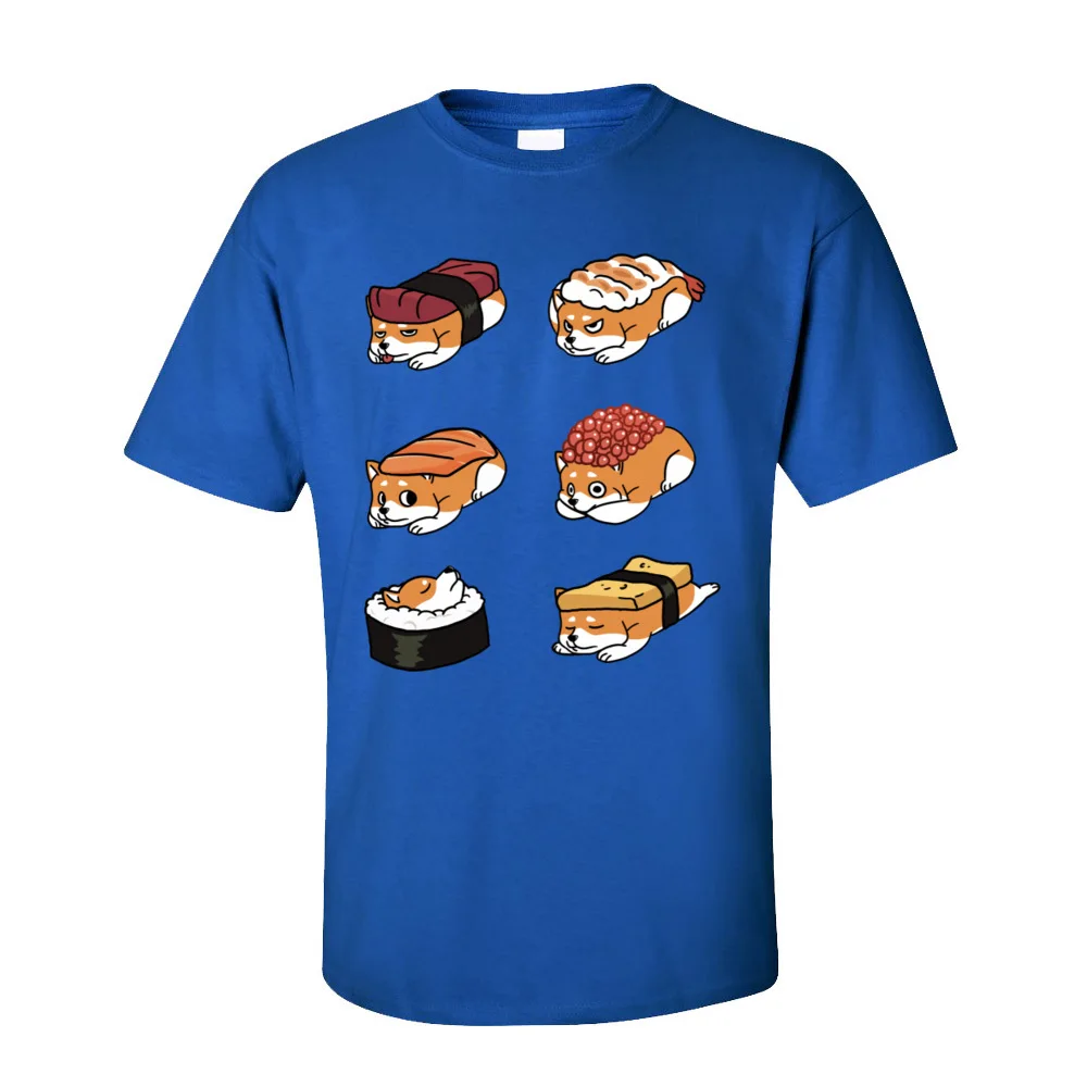 Футболка мужская в стиле хип-хоп, милая тенниска из 100% хлопка с круглым вырезом, Сиба-ину, суши, Нигири, с футболки с коротким рукавом на апрельский день дурака
