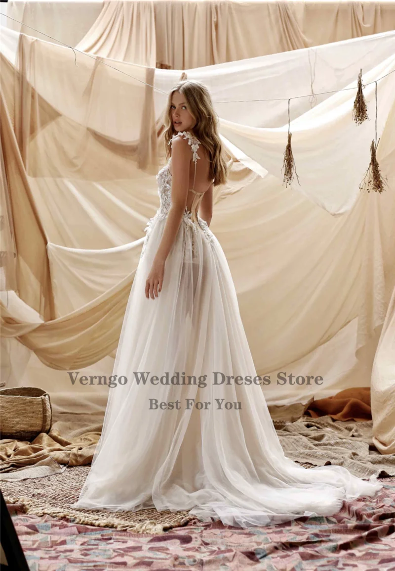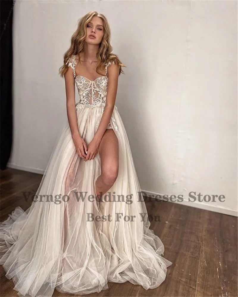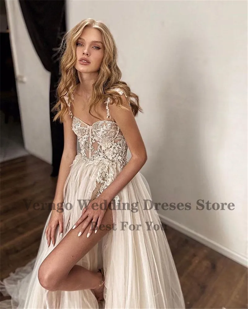 Пляжное свадебное платье Verngo 2020, сексуальное кружевное женское платье на бретелях-спагетти с высоким разрезом сбоку, платье невесты