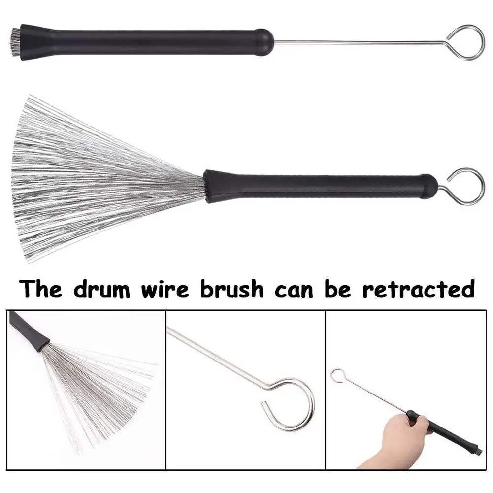 Новое поступление металлическая проволока барабанные щетки чистящий инструмент портативный Джаз музыкальные выдвижные палочки барабанная ручка щетка