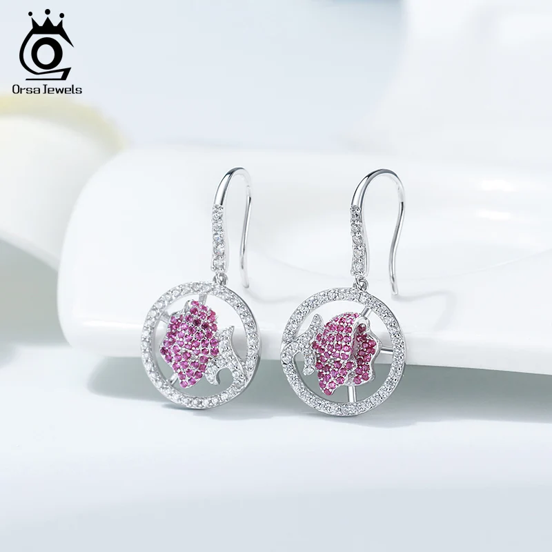 Серьги-гвоздики ORSA JEWELS из настоящего серебра 925 пробы, в форме розы, с цирконом AAAA, 31 мм, модные серьги, аксессуары для девушек, для свиданий, SE315