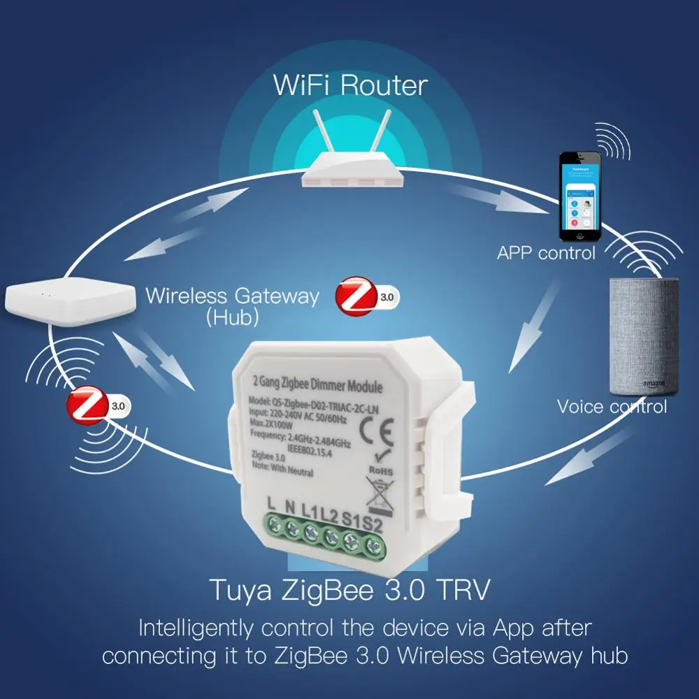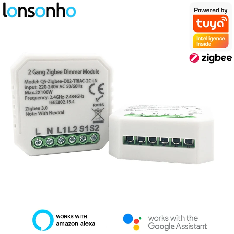 Lonsonho Tuya Smart Zigbee модуль диммера 1 2 банды 220 В с нейтральным 2-сторонним беспроводным управлением работает с Alexa Google Home