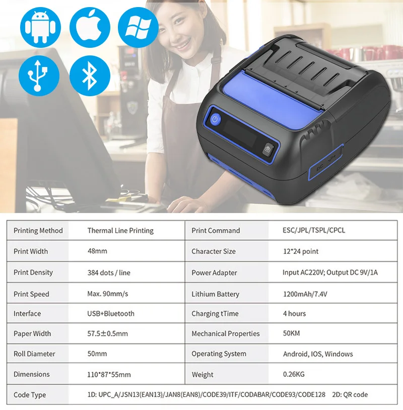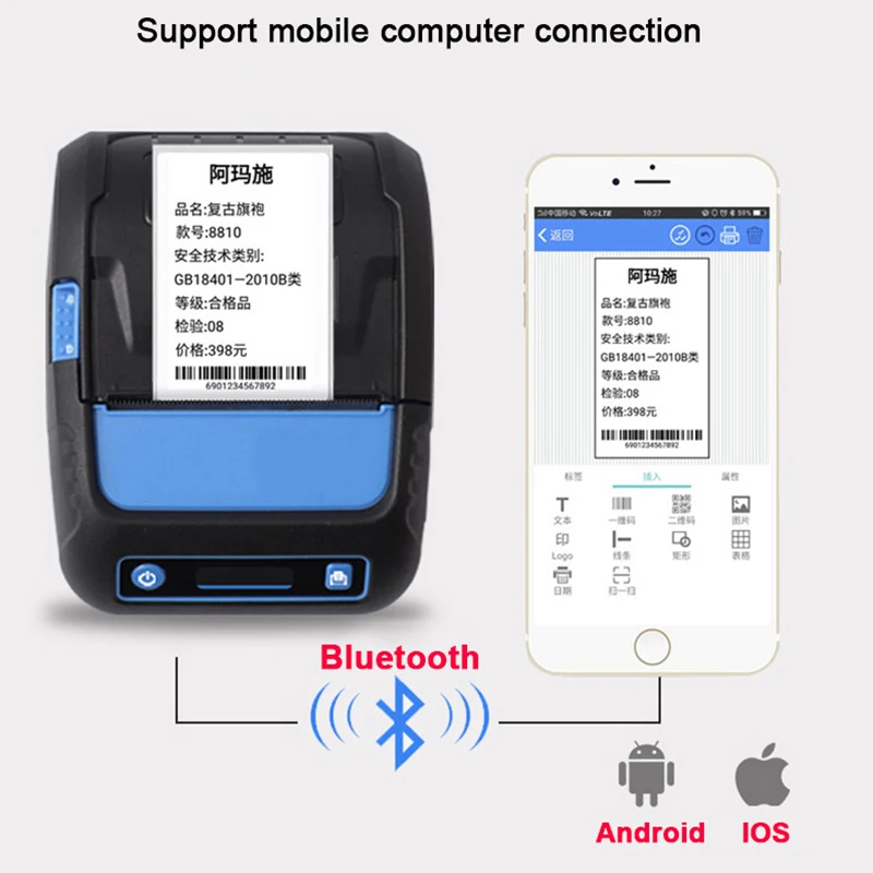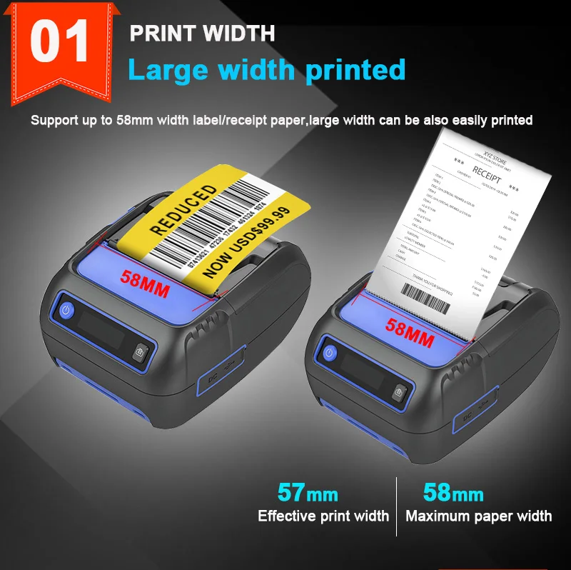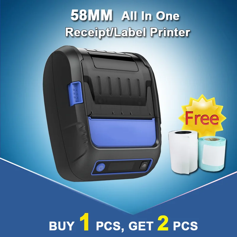 Портативный принтер 58 мм 2 в 1, мини-принтер для чеков и этикеток, 2-дюймовый портативный маленький мобильный принтер для Android IOS windows Pos-машины