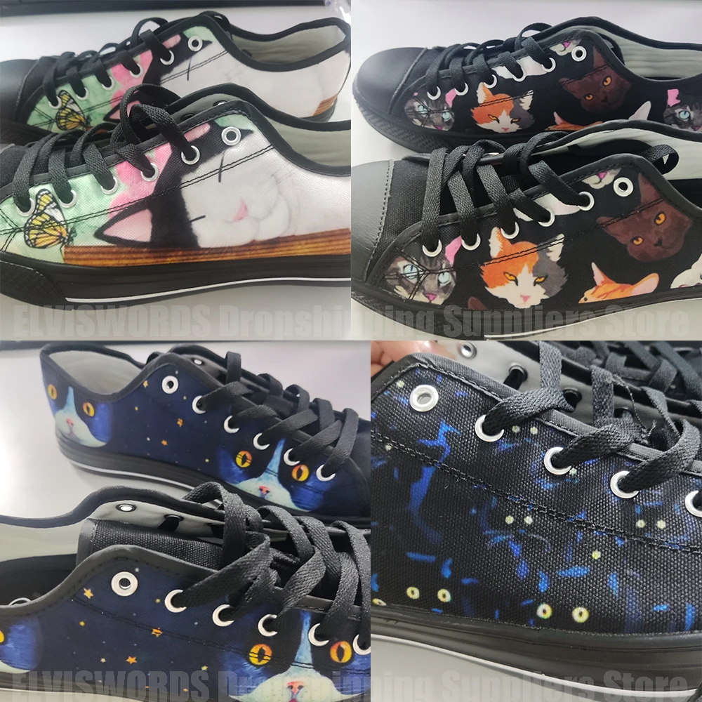 Классические женские кроссовки ELVISWORDS на вулканизированной подошве, легсветильник парусиновые кроссовки на шнуровке с изображением животных и кошек