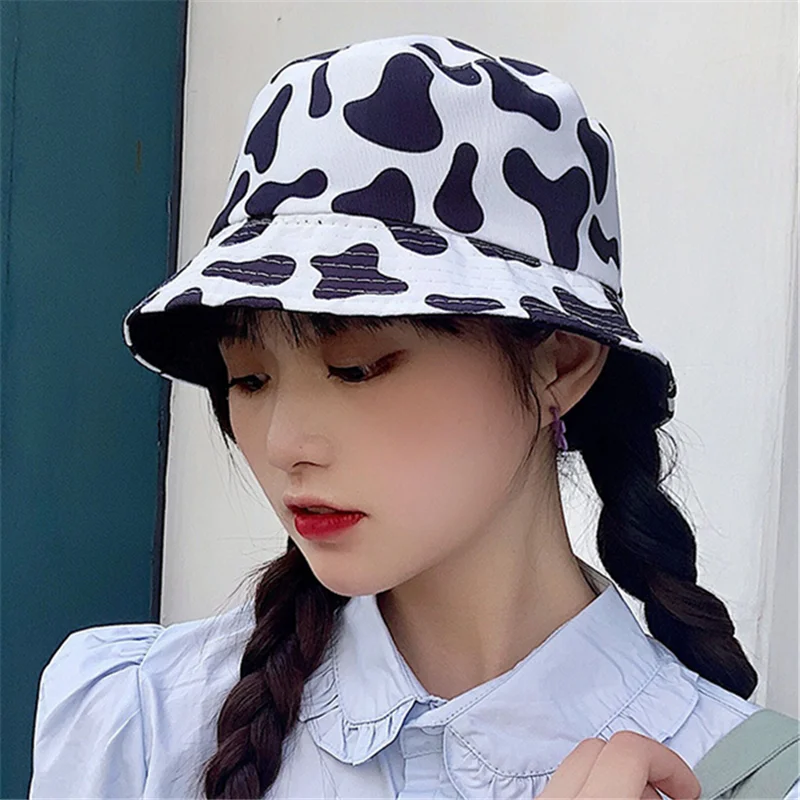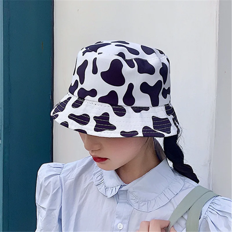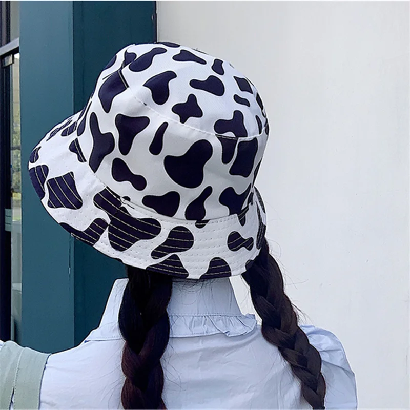 新时尚牛印刷帽白色黑色桶帽可逆的渔夫帽妇女Gorras夏季帽子