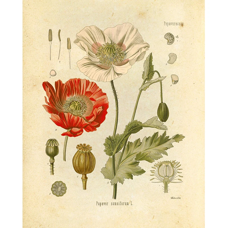 Винтажные растительные принты, принты диких цветов, Картина на холс...