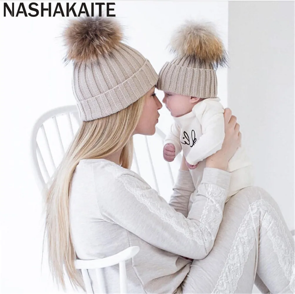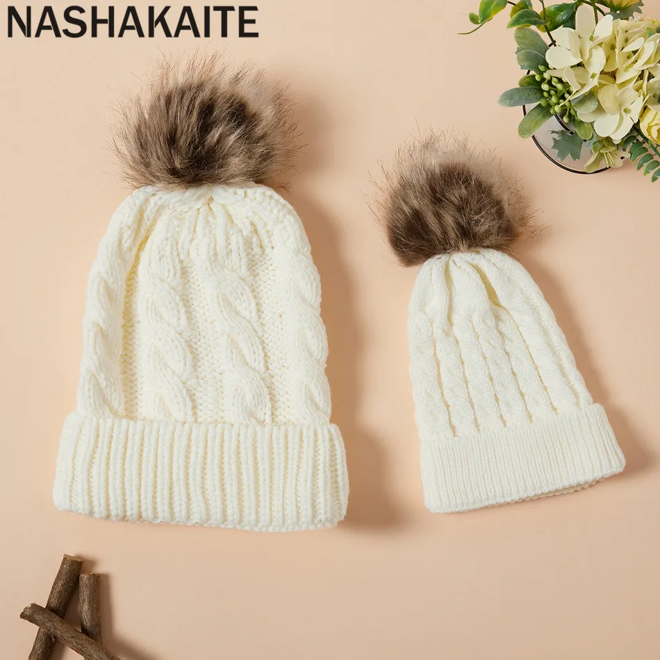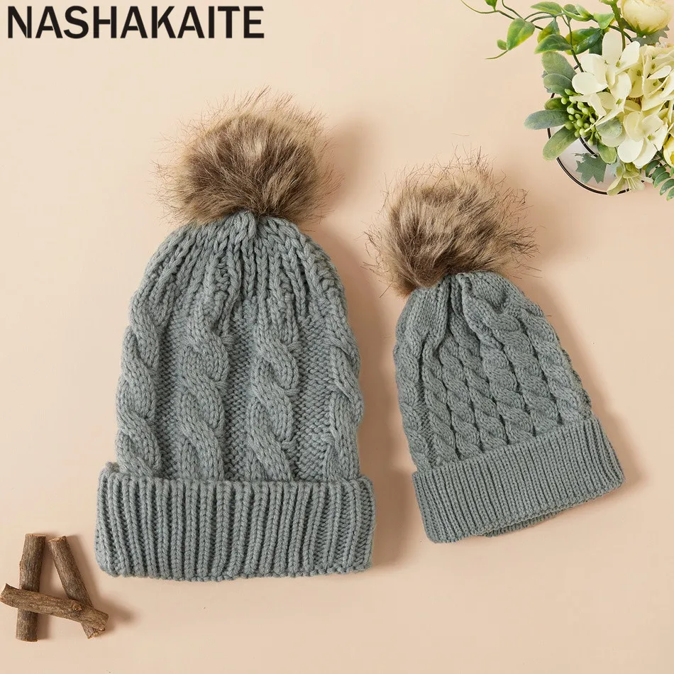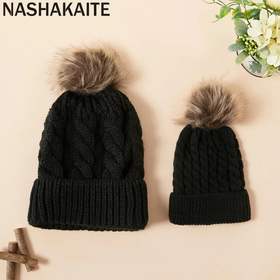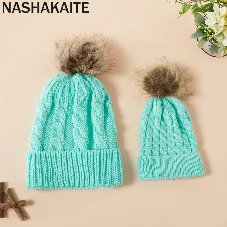 NASHAKAITEшапки Мама и я; Сезон осень-зима; Разноцветные вязаные шапки для От 0 до 4 лет; Семейный образ; Шапки для мамы, дочки и сына