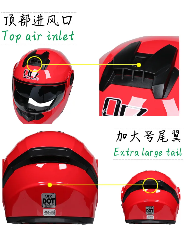 Мотоциклетный шлем с откидной крышкой, Съемный и моющийся подкладкой, с двойными линзами, сертификация DOT