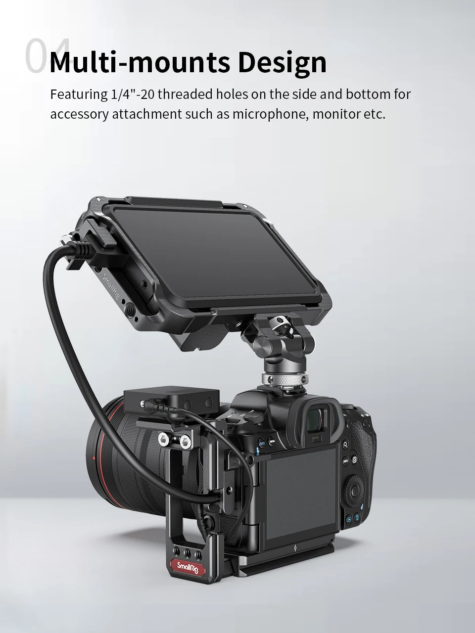 L-образный кронштейн для камеры SmallRig для Canon EOS R5 и R6 w Arca-Type 14 ", резьба для аксессуаров, быстросъемная L-пластина 2976