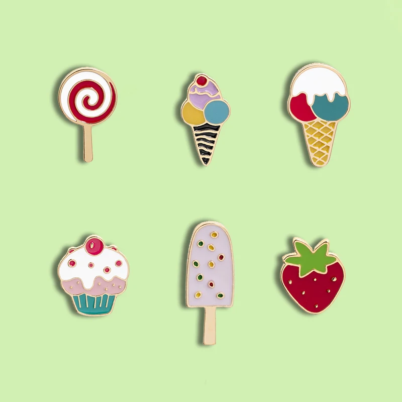 Мультяшный значок с изображением вкусного мороженого, торта, мандарины, клубники, леденца, детский значок, милый модный лацкан, рюкзак, ювелирные изделия, подарок